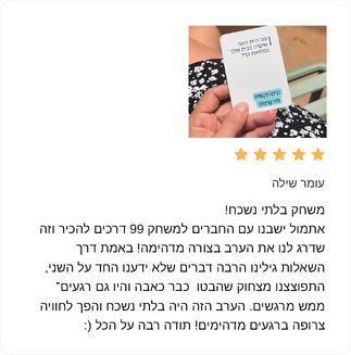 הידיעה שאנחנו מייצרים איתכם רגעי שמחה, שיתוף ותקשורת אמיתית מרגשת ומשמחת אותנו מאוד. הפידבקים והסיפורים שלכם הם הכוח המניע אותנו להמשך העשייה, והם מחזקים את ההבנה שיצרנו משחקים בעלי ערך גבוה שעונים על צורך אמיתי במגוון סיטואציות. מחפשים משחקי קלפים מומלצים? אנחנו כאן בשבילכם!